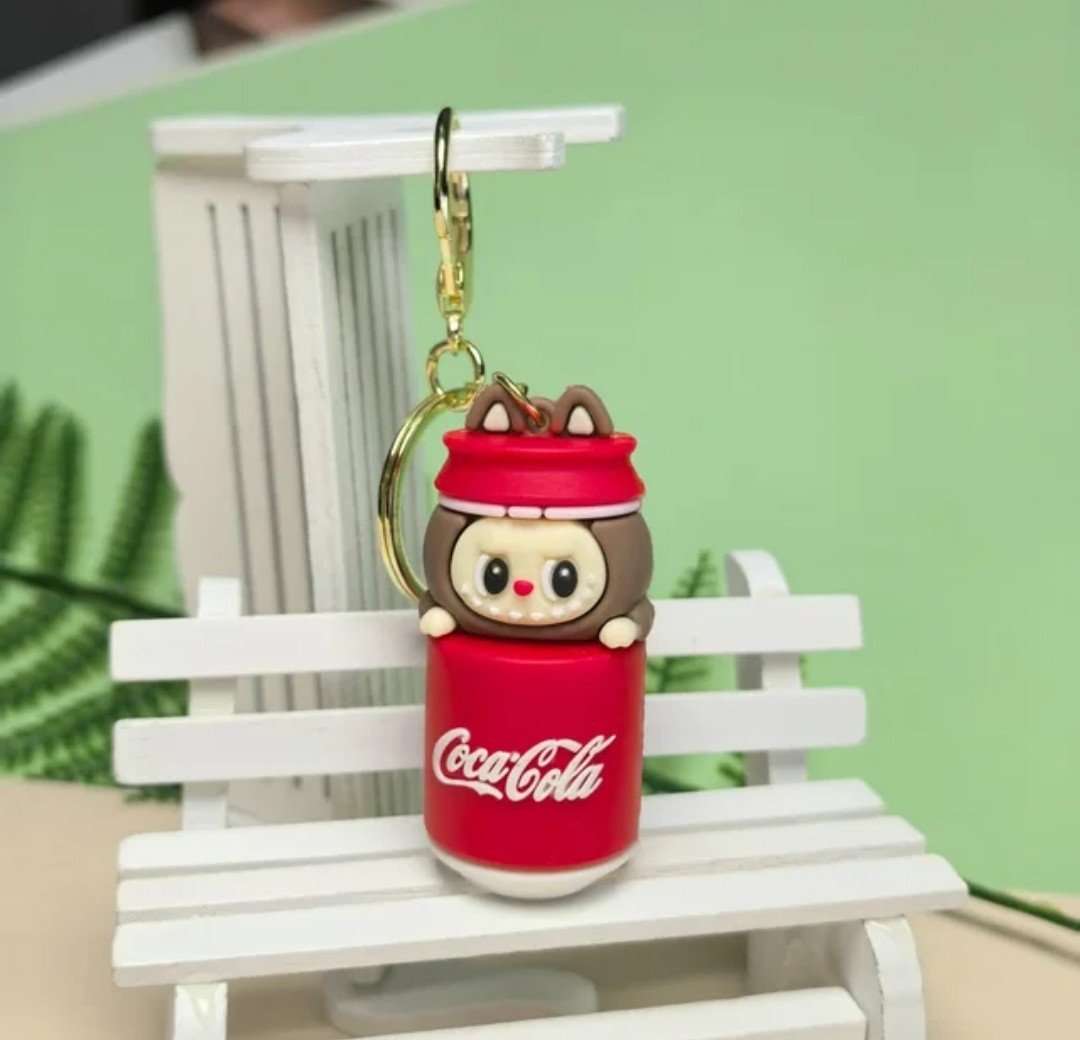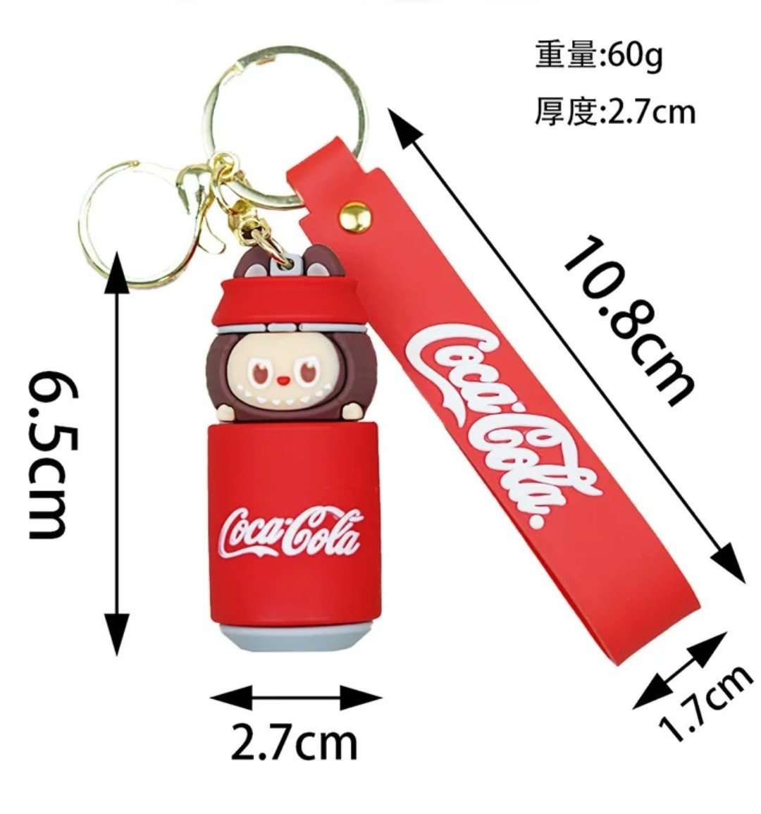 Add a splash of fun to your keys or bag with this adorable Coca-Cola themed cartoon keychain!